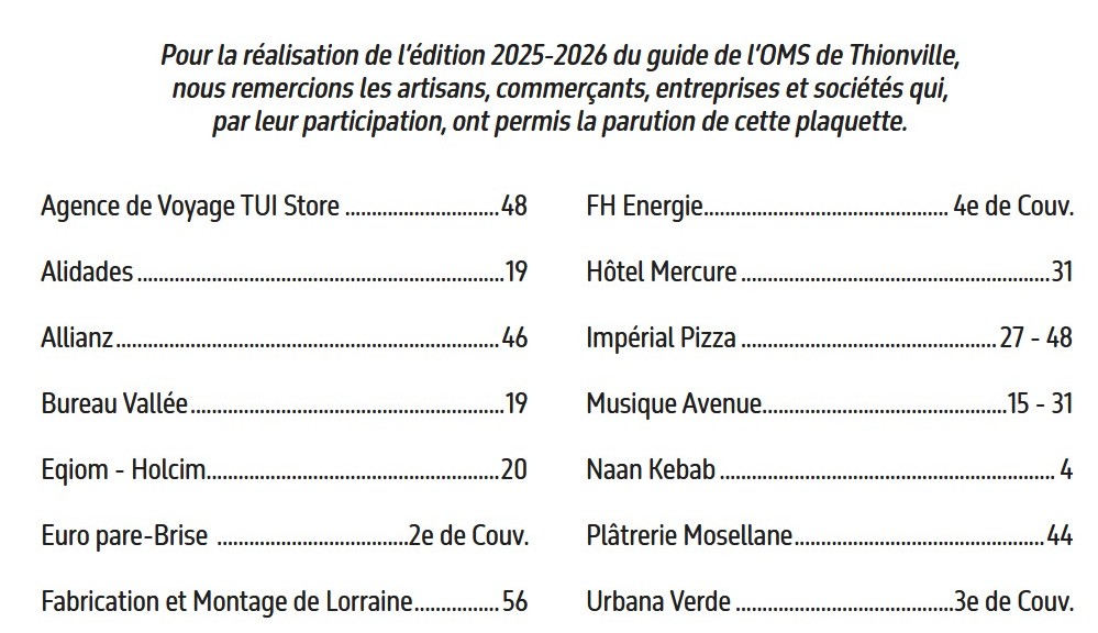 Merci aux annonceurs qui ont permis la réalisation de la plaquette